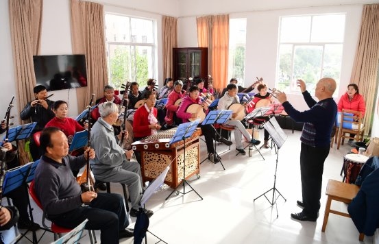 图为玉溪红塔区北苑社区园丁小区老年活动室里老年人在排练节目