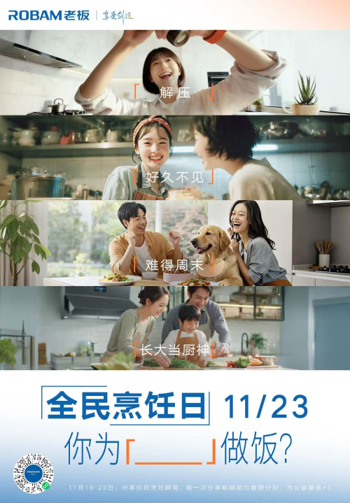 这场号召全民参与的烹饪行动,还将联动公益开展。11月18日——23日活动期间,用户每分享一条烹饪内容,老板电器即向“暖厨计划”公益基金捐赠1元,专项用于为烹饪条件尚有困难的低保户家庭捐赠厨电产品,助力厨房改造,