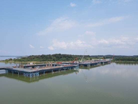 中交中南局承建的天子山大桥项目是S122武汉至咸宁出口公路的控制性工程,横跨武汉江夏区梁子湖,全长2480米。项目作为湖北省交通“硬联通”关键工程,对打通梁子湖南北交通、促进武汉都市圈一体化发展具有重要意义。