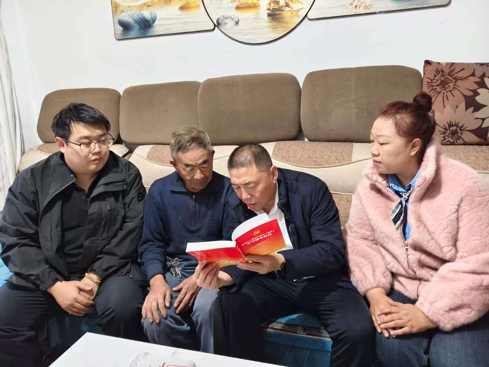 在送学过程中,小分队成员不仅为老党员们送去了《党的二十届四中全会〈建议〉学习辅导百问》等权威学习资料,更采用了“以老故事阐释新理论”的独特方式,深入剖析全会精神的核心要义。他们紧密结合老党员们丰富的生活阅历,把农业农村现代化、民生改善等政策要点,巧妙转化为“养老金上调”“社区环境优化”等贴近生活、通俗易懂的话题。在送学时,一边帮助老人标注重点内容,一边耐心细致地解答疑问,让原本抽象的理论变得生动形象、易于理解,真正在“讲深讲透”上下足了功夫。