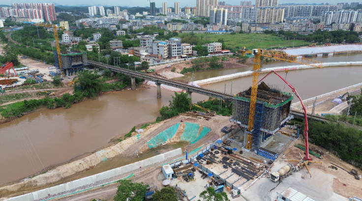 钦北线铁路桥改建工程项目是西部陆海新通道(平陆)运河项目沿线跨河设施改造工程之一,由于既有钦北线钦江桥通航净宽、净空不满足运河提级改造要求,而引起既有线改建。线路位于广西钦州市钦北区,全线长4.138公里,是是横跨平陆运河最大的涉铁桥梁工程,含3.293公里特大桥1座,跨平陆运河185米刚构连续梁拱桥为项目控制性工程。