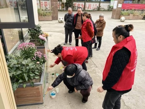 活动当天,共治共享中心广场热闹非凡,来自社区不同年龄段的居民们早早聚集在此,摩拳擦掌准备投入创作。在花箱绘画区,居民们分工协作,有的勾勒线条,有的调配色彩,有的细致填涂。向日葵、月季花等鲜艳的花卉在花箱上绽放,原本普通的花箱瞬间变成了传递文明、美化环境的“艺术品”。
