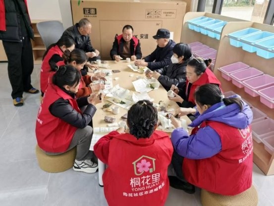 室内绿植制作区同样人气高涨。社区邀请的职业农民现场讲解多肉植物的养护知识、组合搭配技巧以及盆栽装饰方法。居民们认真聆听、仔细模仿,从挑选绿植、搭配花盆,到铺设土壤、装饰摆件,每一个步骤都一丝不苟。大家相互交流经验,分享技巧,不时传来阵阵欢声笑语。很快,一盆盆造型别致、充满生机的多肉盆栽便制作完成,这些承载着居民心意的绿植被整齐摆放在共治共享中心的各个角落,为室内空间增添了自然气息。