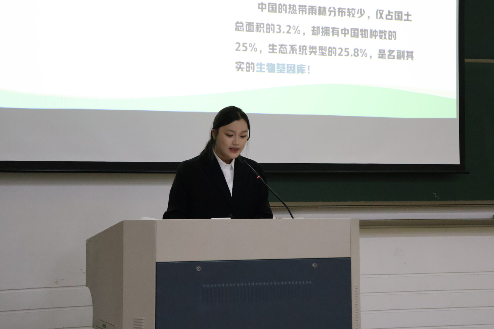 本次宣讲从海南热带雨林国家公园的地理特征、生态功能及保护实践入手,系统介绍了其在涵养水源、维持生物多样性、应对气候变化等方面的重要作用。通过丰富的影像资料与实例讲解,同学们深入理解了国家公园作为“国之大者”在生态文明建设与国土生态安全中的角色,增强了保护自然遗产的自觉意识。