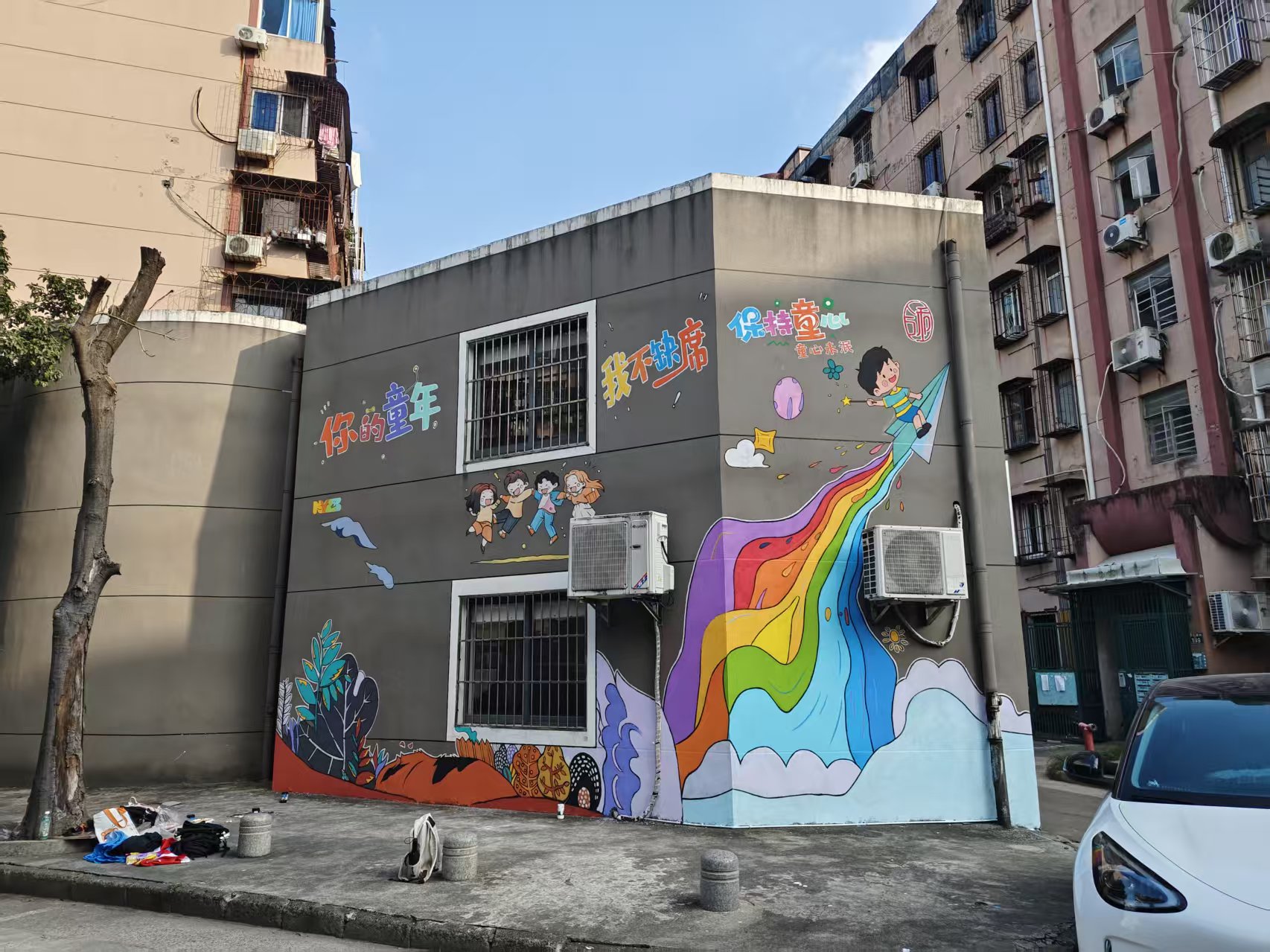 12月2日,宁波市鄞州区百丈街道朱雀社区青少年宫的外墙前,一幅崭新的墙绘引得居民纷纷驻足。童真笔触勾勒出烂漫笑脸与天马行空的想象,旁侧“你的童年我不缺席,保持童心”的暖心寄语,既为社区添注了浓郁艺术气息,更具象化了朱雀社区在鄞州区委统战部协同参与下,以“合和”理念深耕“儿童友好社区”建设的鲜活实践。