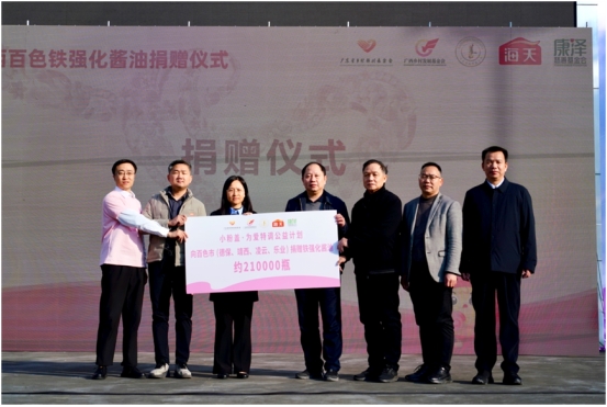捐赠仪式上,海天味业与康泽慈善基金会宣布,“小粉盖·为爱特调”公益计划将持续向百色市德保县等多地学校捐赠铁强化酱油,预计覆盖近10万名学生,旨在通过日常饮食中的“微小改变”,助力乡村学子健康成长。