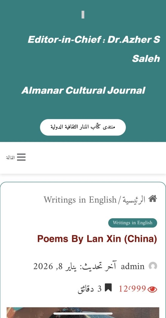伊拉克《Almanar Cultural Journal》,以阿英双语出版成为中东与全球文化沟通的核心纽带,覆盖中东及多国文学界、学术界,依托伊拉克“中东文化灯塔”文脉,聚焦文学艺术国际传播与和平理念传递。此次不仅为兰心开设《Poems By Lan Xin (China)》专属专栏,更颁发编号72的联合国标识会员证,相关报道阅读量超数万。期刊编辑部特别提及,《人间天堂——香格里拉》中“愿宇宙之爱漫过世间每一道山河,愿世界每个角落都照着香格里拉的模样”的诗句,精准契合了中东地区民众对和平的深切向往,让东方的和平智慧与中国的人文情怀引发广泛共鸣。