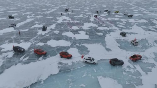 在冰上趣味赛的现场,80余台车辆集结乌拉盖湖,车手们在宽阔的冰面上尽情漂移过弯,轮胎与冰面摩擦溅起的晶莹冰花在阳光下折射出炫目的光彩,为现场观众带来了一场充满乐趣与挑战的视觉盛宴。