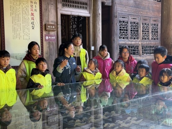 汪山土库作为“中国府第文化博物馆”,由清中期“一门三督抚”程氏兄弟所建,距今已有180年历史,其青砖黛瓦、巷道纵横的建筑格局被誉为“江南小朝廷”。活动中,孩子们在社工和景区讲解员的带领下,依次参观了祖堂、望庐楼、接官厅等核心景点,认真聆听程氏家族“忠孝廉节”的家风故事,近距离欣赏“回声巷”的建筑奇趣与木雕石刻的精湛工艺。在互动环节,孩子们围绕建筑布局、历史典故积极提问,在问答中加深对本土文化的理解。