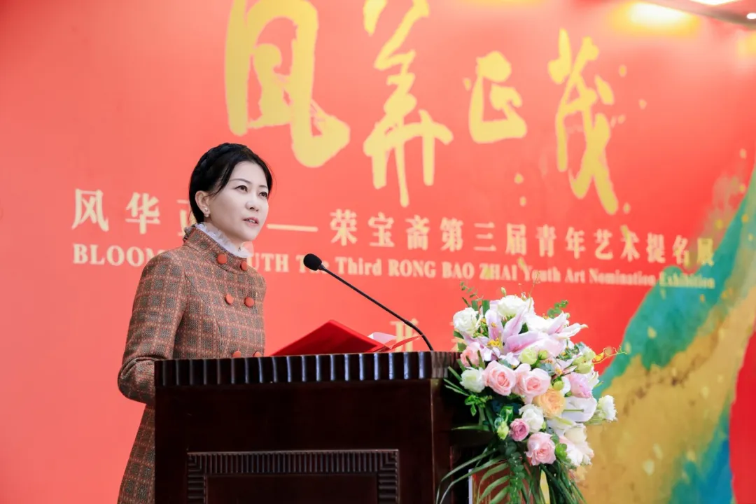 中央广播电视总台社教节目中心主任杨继红女士在致辞中谈到,总台与荣宝斋渊源深厚,她指出青年是文艺事业的生力军与未来,荣宝斋连续举办三届青年艺术提名展,是践行文化央企使命、推动传统文化创新转化的重要举措。