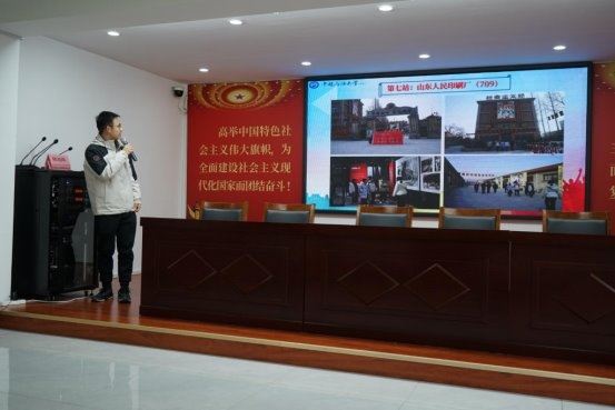 座谈交流结束后,实践团与三线建设亲历者移步社区党群服务中心会议室,进行了最后的汇报环节。实践团队长吴冕代表团队向社区领导、三线建设亲历者汇报了实践团组建、行程规划及实践成果等情况,实践团成员每个人汇报了自身的感受。社区书记陈连纵、山东三线军工研究室秘书长张明泉及在座的三线建设亲历者们对实践团的表现给予了充分肯定和热烈表扬。