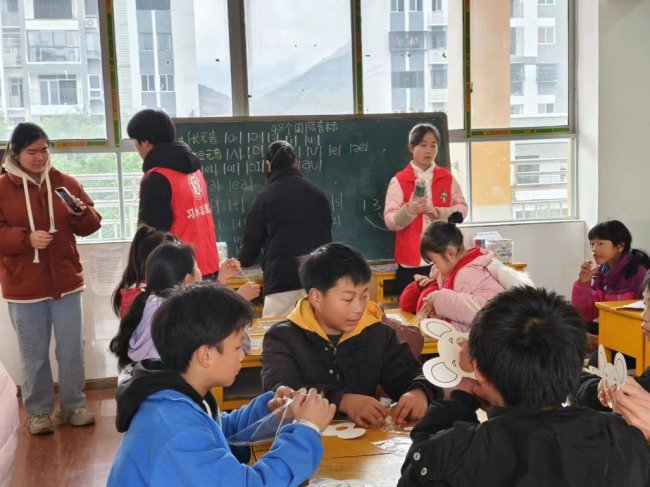 在为期八天的支教生活中,张小兰不仅带领孩子们学习语数外主课,还精心设计了美术、班会等素质教育课程。她将枯燥的音标知识融入趣味游戏,带领学生诵读苏轼《水调歌头》,为基础薄弱的孩子“开小灶”。课余时间,她还参与安全知识宣传,帮助孩子们提升自我保护意识。离别那天,孩子们依依不舍地递上小纸条,稚嫩地问:“老师,下次还能见到你吗?”