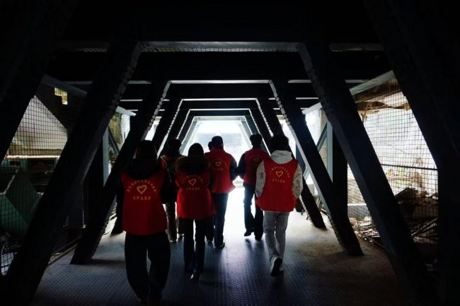 北川地震遗址作为整体原貌保留的地震灾难见证地,坍塌的建筑、断裂的道路与静默的纪念碑,以最直观的方式定格了灾难瞬间,让实践队员们深切感受到自然力量的磅礴与生命的脆弱。在老北川中学遗址前,队员们驻足默哀并献上鲜花,聆听讲解员讲述抗震救灾中的英雄事迹与生死救援的感人故事,那些跨越地域的驰援、不离不弃的坚守,生动诠释了“万众一心、众志成城”的抗震救灾精神。