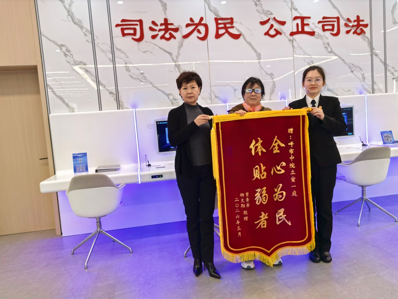 一面锦旗,一份认可,更是一份责任。此次为杨文翔办理诉讼费减交一事,是呼和浩特市中院践行司法为民宗旨、传递司法大爱的一个缩影。未来,呼和浩特市中院将继续坚守法治初心,厚植为民情怀,持续完善司法救助工作机制,用实实在在的行动为弱势群体撑起司法“保护伞”,让法治的阳光照亮每一个角落,让司法温情浸润民心。(赵禄 王胜久)