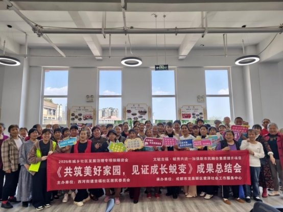 近日,龙泉驿区西河街道吉福社区“文毓吉福・毓秀共进 —— 新市民融合素质提升项目”圆满收官。项目以“新市民・新家园・新融合”为主题,精准对接生态移民安置社区治理需求,通过文明培育、技能提升、环境美化、邻里共建等系列服务,有效破解新市民融入难题,全面提升社区凝聚力与居民幸福感。