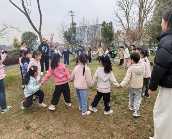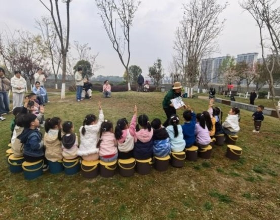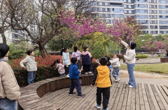 3月14日上午,社区携手马厂坝幼儿园开展种植实践活动,自然之友小组的老师全程带队,通过系统自然教育与动手种植,丰富儿童自然认知、美化社区环境。活动伊始,自然老师带领小朋友开展趣味热身,随后以《轻敲魔法树》绘本引入,激发自然探索兴趣。“大树侦探团”环节中,小朋友们借助放大镜寻找香樟树、紫薇、紫荆,观察植株特征,在实践中培养观察与协作能力,老师同步讲解树木知识,加深认知。