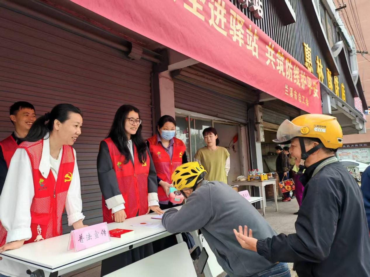 近日,浙江省兰溪市云山街道云山社区携手市总工会,以“国家安全进驿站,共筑防线护平安”为主题,走进社区工会驿站,开展精准普法宣传活动,将国家安全与法治知识送到新就业群体及户外工作者身边。